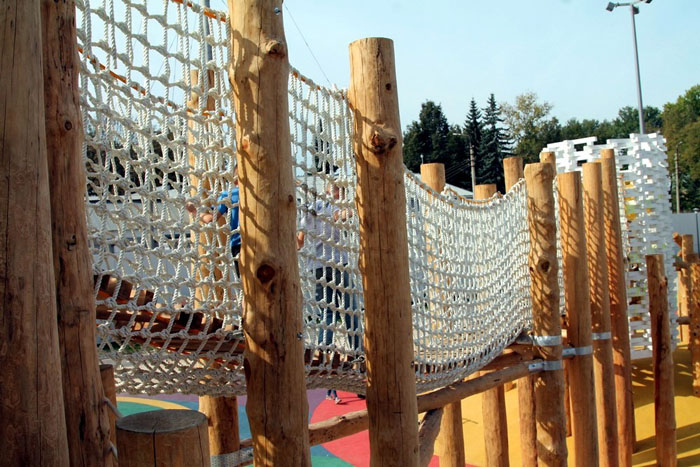 Верёвки везде добротные. Брёвна из лиственницы. Безопасность на уровне. Как доделают — обязательно протестирую на своих детях.