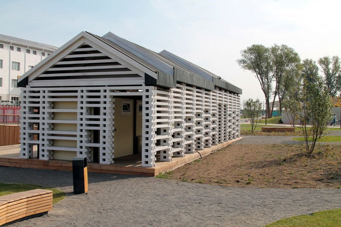 Бетонный забор ФСБ облагородили композитными панелями. Отличное решение. Главное чтобы п****асня с аэрозольными балончиками его не расписала похабщиной.А это (как оказалось) туалеты! Внутрянку проинспектировать пока не смог, заметил это сооружение в последний момент, снаружи нет никаких указателей. И это хреново, граждане. Ну, напишите на стеночках «Мэ» и «Жо», от вас, что, убудет? А такие слепошарые как я — заметят. Другой раз обязательно проинспектирую внутрянку — готовьтесь!