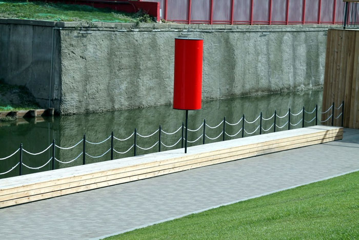 А вообще ещё нужны стойки со спасательными кругами, как в старом, добром совке. Может, в новом исполнении, но такие стойки нужны. Может, даже не спасательные круги, а такие плоские штуковины из пенопласта с верёвкой по краям. Их можно расписать всяко. И красиво будет и полезно. Даже если раз в сто лет пригодится — делать надо.