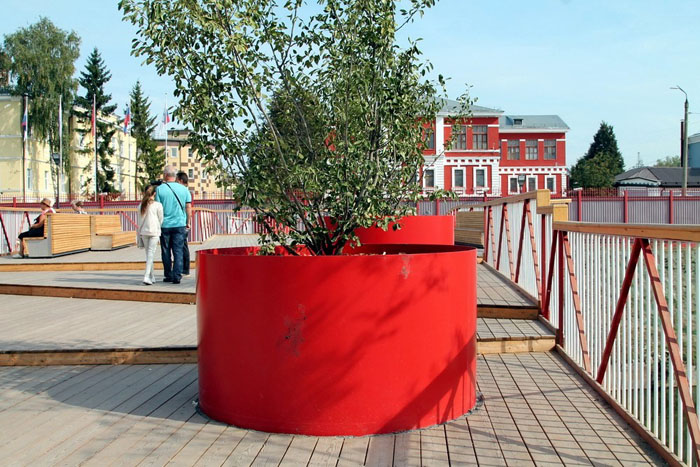 Клумбы на ТОЗовском мосту — полный п****ц. Не знаю, что за деревья они туда посадили — но они уже засохли. А если дренаж не сделали — так вообще писец, зимой вода замёрзнет и начнёт рвать эти бадьи.