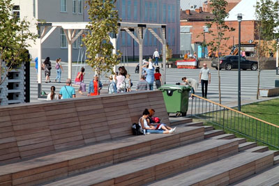Самая бессмысленная конструкция на Набережной. Сидеть и смотреть на забор ТОЗа? Вы серьёзно? Чего бы вам не наладить тут просмотр кинофильмов, как я предлагал?