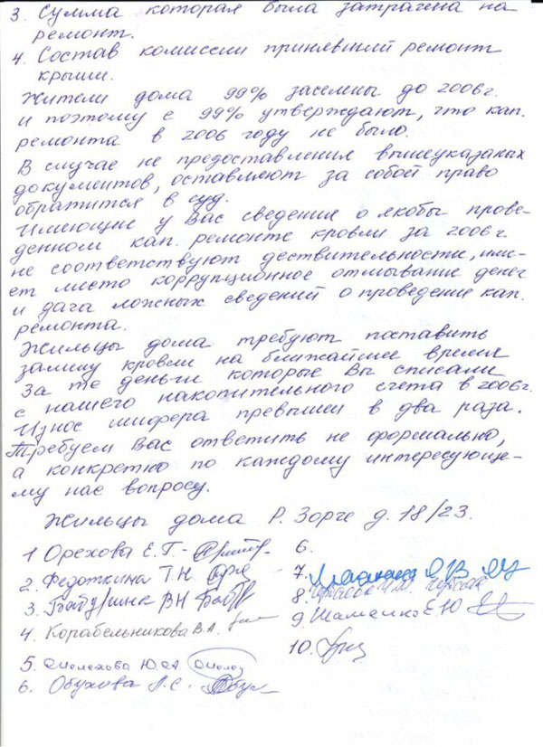 Вам же ясно сказала власть — денег нет,но вы там держитесь! Вот и надо держаться, а не беспокоить уважаемых и занятых начальников бесполезной писаниной. На каждый листок письма получите два полного обстоятельного ответа. И не более того!