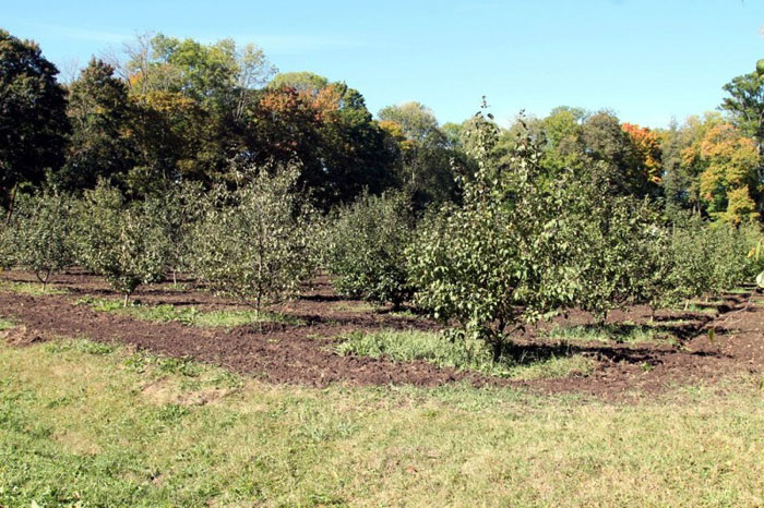 Яблоневый сад высаженный на поляне у амбаров вроде прижился. Где-то тут растёт и та яблонька которую окучивал мой старший сын.