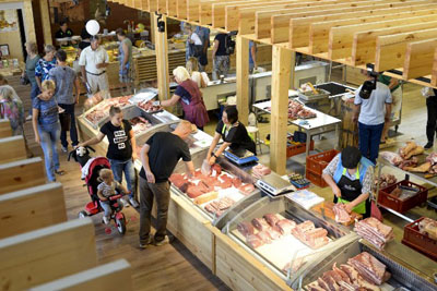 Первый корпус рынка полностью готов и уже фунциклирует. Второй готовят к монтажу. В готовом корпусе светло, чисто и не воняет. Меж лотков ходят ошалевшие покупатели которых встречают не менее ошалевшие продаваны.