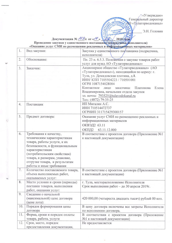 Оказывается,  АО «Тулагорводоканал» имеет контракт (договор) с ИП Мигалин А.С. на оказание услуг по размещению рекламных и информационных материалов. Документы по этой сделке доступны в открытом доступе.
