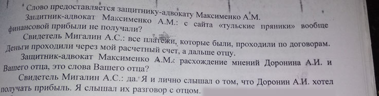 О том, кому через указанного ИП идёт выручка, в суде над Александром Дорониным проговорился сам Мигалин А.С., хоть его допрос представлявшая обвинение госпожа Жукова быстренько свернула (поняла, что мальчонка сболтнул лишнего?).