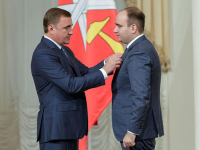 Губернатор Тульской области Алексей Дюмин наградил своего первого заместителя Вячеслава Федорищева за проект «Тульская набережная»