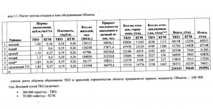 Выдержка из Инвестиционного проекта по созданию объекта инфраструктуры по обработке и захоронению твердых коммунальных отходов в Каширском районе Московской области