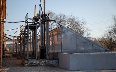 • на стены камеры смонтировали металлоконструкции и накрыли светопрозрачным поликарбонатом;