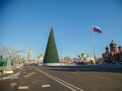 В этом году Тула объявлена новогодней столицей России. В связи с этим площадь Ленина украсила новая ёлка высотой 32 метра. На основной каркас поместили 3,5 тысячи веток нового лапника «уральская сосна».