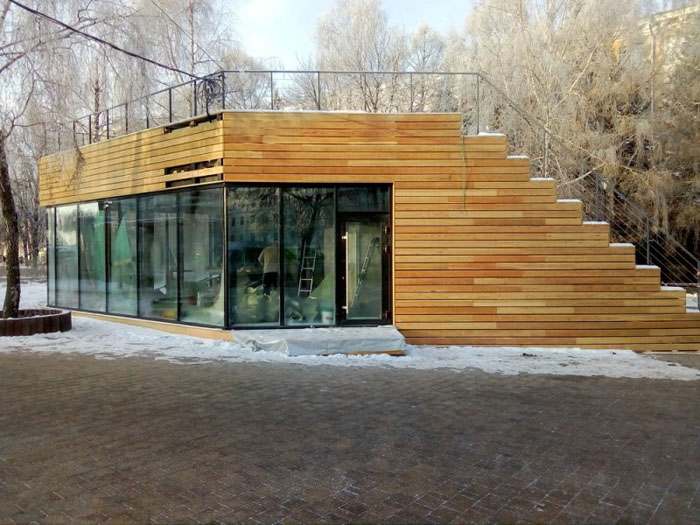 В общем кафе это хорошо, а вот ступеньки — весьма сомнительное удовольствие. Категорически не согласен.