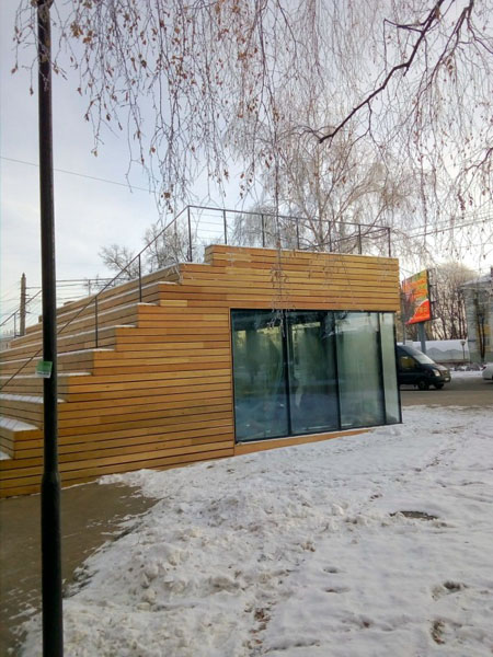 Сейчас в этом скверике лепят кафешку весьма странного дизайна, то ли в виде амфитеатра, то ли в виде смотровой площадки.