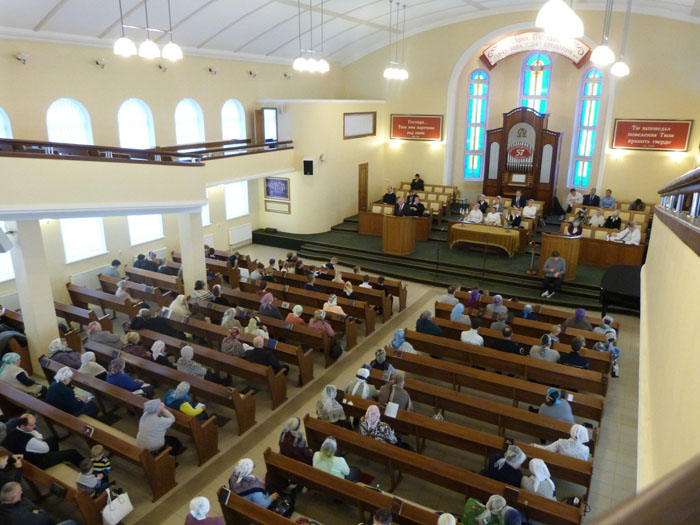 — Начинается с «дискотеки», это так называемая «группа прославления». Идет минут пять, исполняют «христианские» песни. Потом тридцать минут монотонного текста об их якобы христианской жизни. Библию истолковывают на свой манер, так как ни у кого нет ни теологического образования, ни богословских курсов. Люди несколько раз прочитали Библию, и считают, будто они ее понимают, в силу своего ума и испорченности. Иногда из контекста выдергивают фразы, и начинают их по-своему интерпретировать. В конце опять музыка, а потом кушаем – стол накрывают с чаем и печеньями.