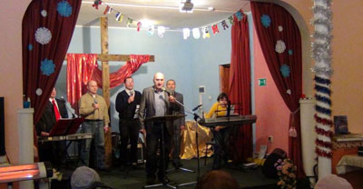 — Начинается с «дискотеки», это так называемая «группа прославления». Идет минут пять, исполняют «христианские» песни. Потом тридцать минут монотонного текста об их якобы христианской жизни. Библию истолковывают на свой манер, так как ни у кого нет ни теологического образования, ни богословских курсов. Люди несколько раз прочитали Библию, и считают, будто они ее понимают, в силу своего ума и испорченности. Иногда из контекста выдергивают фразы, и начинают их по-своему интерпретировать. В конце опять музыка, а потом кушаем – стол накрывают с чаем и печеньями.