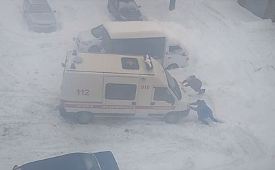 В Алексине в «снежную ловушку» попала карета скорой помощи – медикам пришлось самостоятельно выталкивать забуксовавший микроавтобус. Видео с места событий опубликовал паблик «Алексин.Слухи».