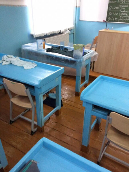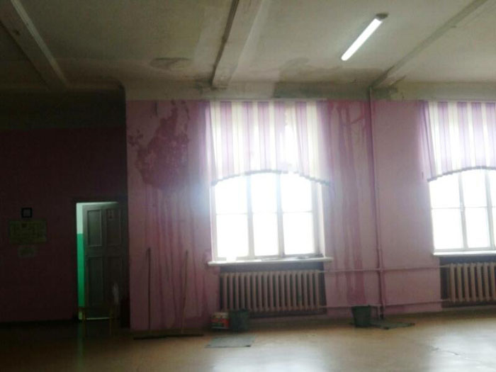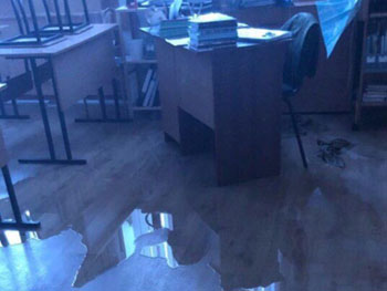 В школе №66 на Косой Горе протечки крыши добрались до классных комнат.