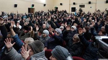 Жители г. Кимовска голосуют за резолюцию митинга против «пенсионной» и «мусорной» реформ
