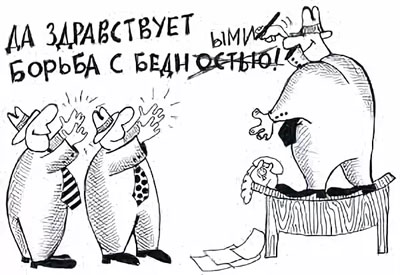Тут нужно понимать, что бедность населения — это одна из целей всего социально-экономического блока. Только формулируется она иначе: низкая стоимость рабочей силы, которая позволила бы нам быть конкурентноспособными.