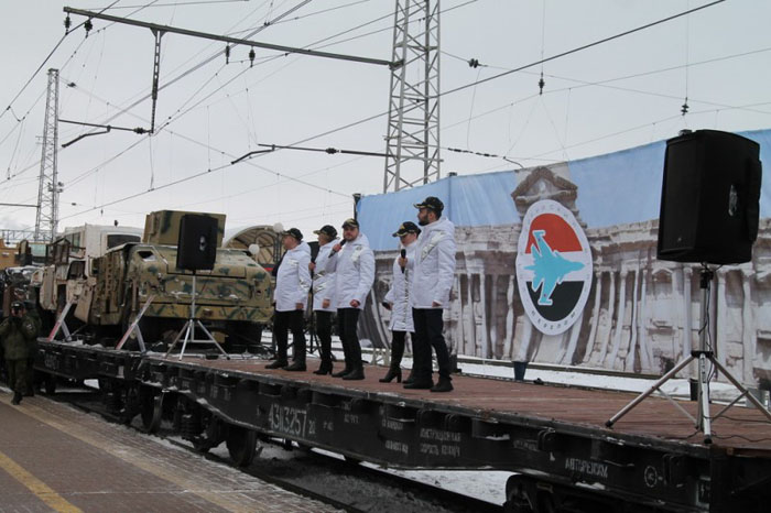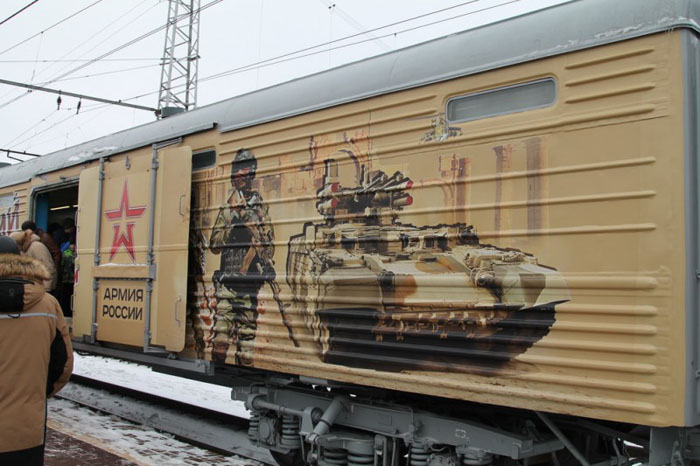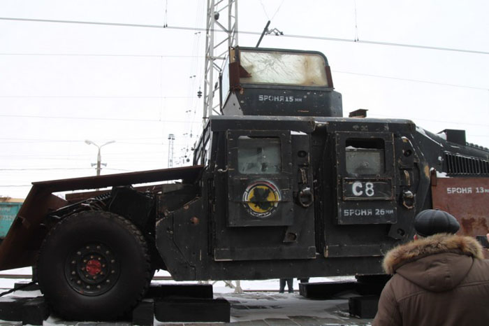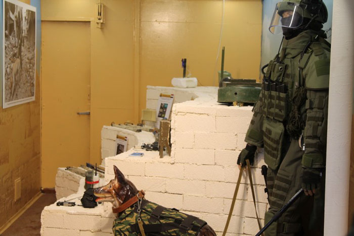 В одном вагоне была выставка про разминирование. МОНки, противотанковые и прочие «сюрпризы» которые наши сапёры обезвреживали в Сирии.