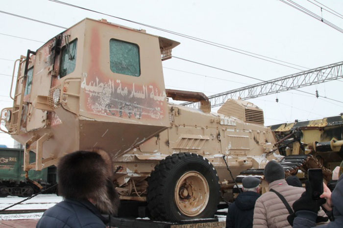 В голове состава в основном тяжёлая бронетехника типа вот такой южноафриканской точилы отжатой ИГИЛовцами у сотрудников ООН.