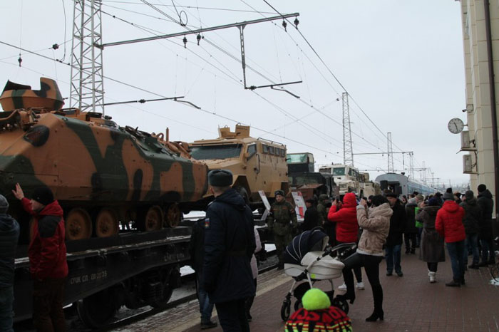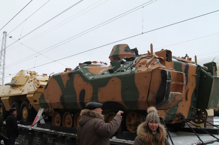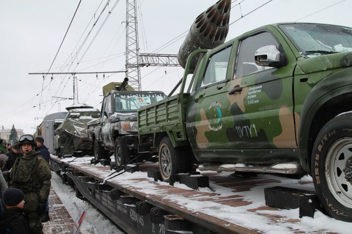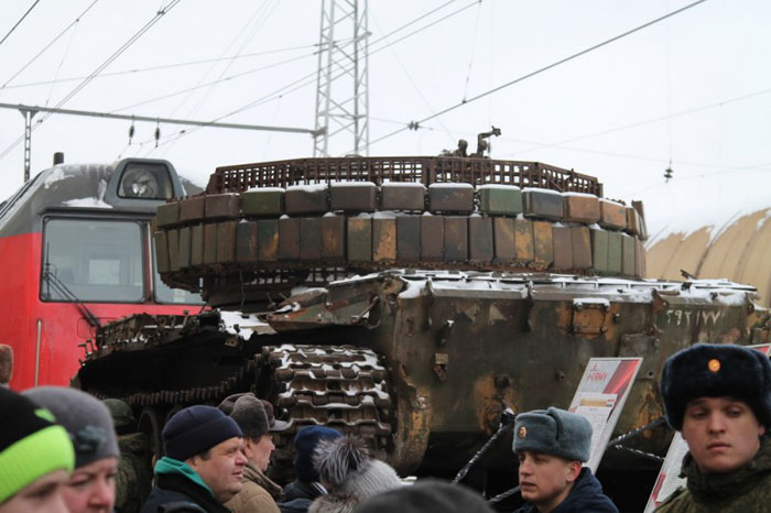 Сегодня [24 февраля] в Тулу приезжал эшелон с конфискованной в Сирии у сраной ИГИЛы (запрещённой на территории РФ) техникой. Пропустить такое событие мы не могли. Поехали всей семьёй.