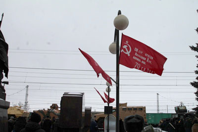 Площадь у перрона была украшена флагами Победы. Либеральных гнид коробило от серпа и молота на флаге как вампиров на солнышке :))