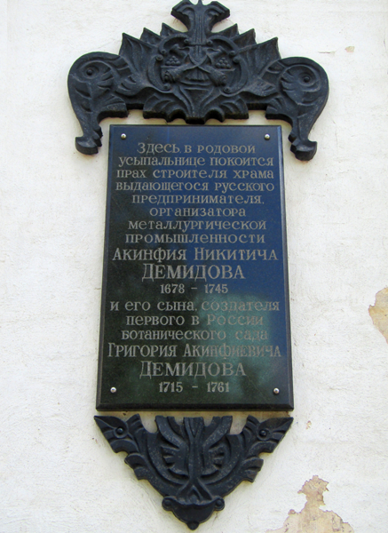 Мемориальная доска на родовой усыпальнице Демидовых (Тула)