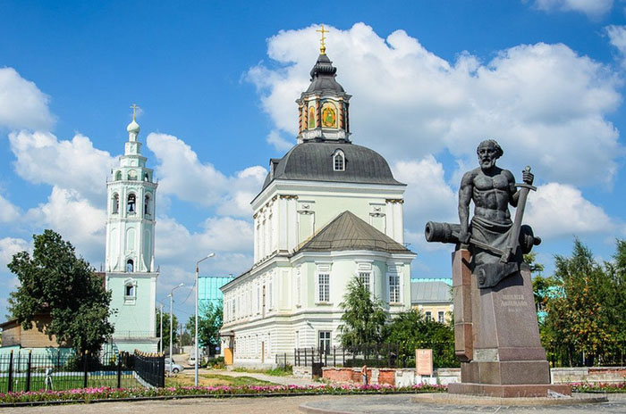 Николо-Зарецкая церковь, построенная в начале XVIII в. на средства Акинфия Никитича Демидова, и памятник Никите Демидову. Тула