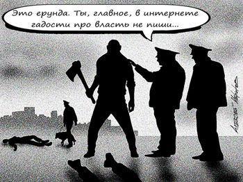 Когда законопроект «о неуважении» принимали в первом чтении, многие депутаты и сенаторы, включая поставивших под ним подписи, признавали, что арест на срок до 15 суток здесь — это слишком. Но арест все же остался — для злостно «неуважающих» власть, общество, Конституцию, герб, флаг и Гимн России в Интернете.