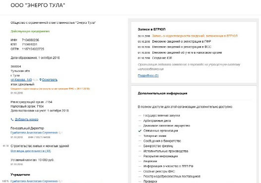 На деле. Фирма открылась в октябре 2018 года. ОКВЭДы: стройка, торговля и прочее. В общем, стандартная картина для однодневки. Директор данной фирмы раннее возглавляла ООО Горгазконтроль (видимо, по газовым счетчикам, анализаторам прокатывать схема перестала) и занялись электричеством.
