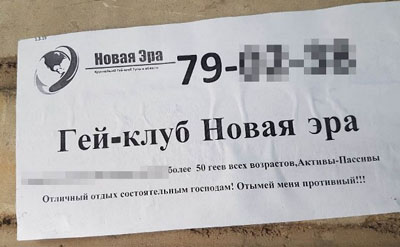 Объявления, зазывающие в гей-клуб «Новая эра», расклеены в людных местах и смущают прохожих