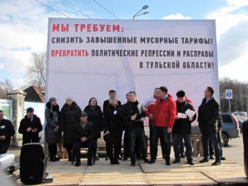 Вторым выступающим был экс-координатор тульского регионального отделения «Справедливой России» и экс-член многих партий В. Н. Сухорученков. Надо отметить, что говорить он умеет гораздо лучше, чем Лебедев, что и продемонстрировал собравшимся. Однако конкретной программы борьбы за отмену мусорной реформы или хотя бы снижение тарифов за вывоз отходов не озвучил и он.