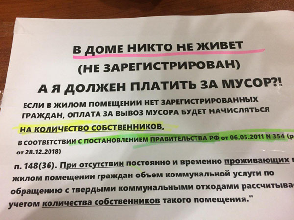 Как не платить «за мусор», если ты не живешь в квартире которой владеешь? Никак, выяснили тульские твиттеряне
