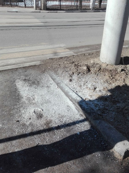 Кто-то посыпал свежим реагентом сухой асфальт на остановке ул. Агеева.