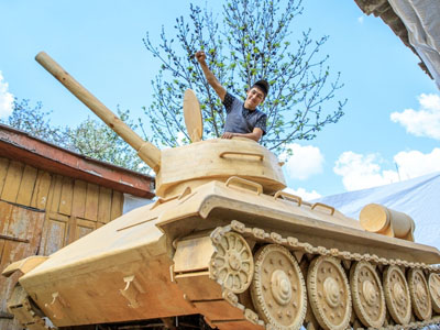 — На Луну уеду — там луноход сделаю. А здесь нужно военное строить. У меня дед войну прошел, я знаю. Танков из дерева никто еще в мире не делал — интернет весь смотрел. Игрушки деревянные есть, а чтобы танкист в нём сидел — нет. Хочу танк подарить президенту Путину, в память о наших дедах и отцах, они вместе фашистов били. Думал, своим ходом поеду на нём в Москву…
