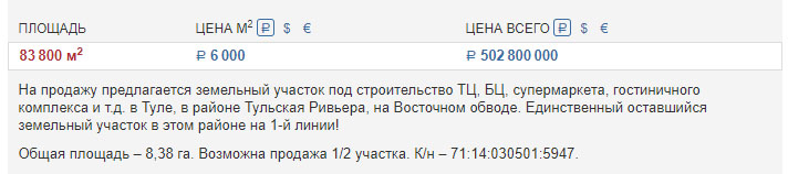 А доблестные тульские борцы с коррупцией заняты какими-то более важными делами, им неинтересно, как вообще подобные участки попали в частные руки и почему так нагло занизили кадастровую стоимость…