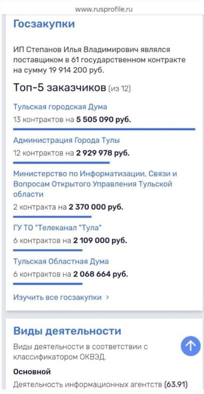 На втором месте по доходам оказался владелец информагентства «Тульская пресса», ставший депутатом от «ЕР» Илья Степанов, который указал в декларации за 2018 год доход в размере 26 млн рублей.
