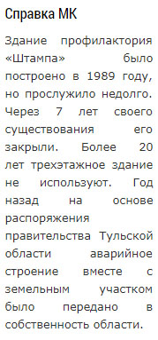 Что ждет заброшенный профилакторий «Штампа» в Туле