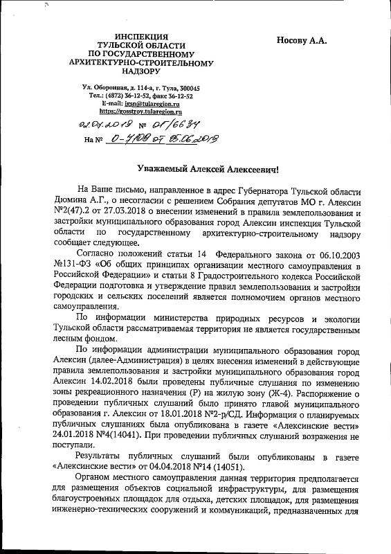 Инспекция Тульской области по государственному архитектурно-строительному надзору нашла нарушения при переводе 1,5 га земли в микрорайоне Бор из рекреационной зоны в жилую.