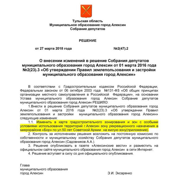 Решение об изменении зоны приняли местные депутаты во главе с Эдуардом Эксаренко в марте 2018 года.