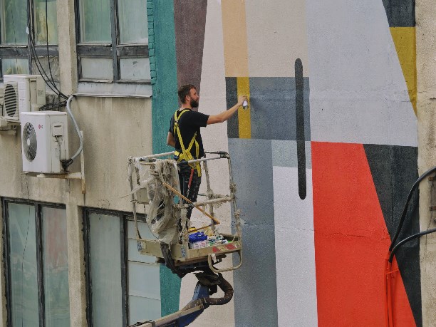 На одной из лицевых стен «Октавы» «орудует» Дмитрий Аске. Он создаст работу, раскрывающую тему звука как способного к трансформации явления.
