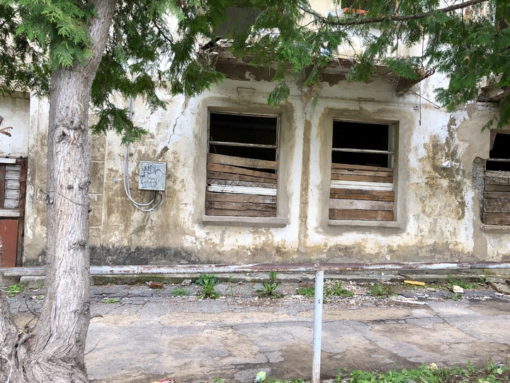 При въезде в город сразу бросаются в глаза обветшалые жилые «сталинки», а дальше – хуже. На улице Мира стоит двухэтажное здание с облупившейся штукатуркой на фасаде – это детская музыкальная школа. А прямо напротив нее – целый ряд заброшенных домов, обнажающих на просвет весь нехитрый разрушенный и даже местами поросший кустами интерьер. А прямо напротив этих руин – густой зеленый массив, называемый городским парком. У него и вход есть – с красной звездой наверху.