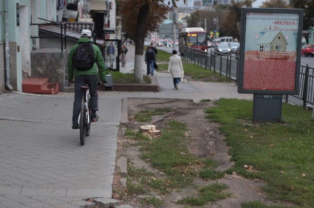 – Благоустраивать кусочек улицы – значит тратить огромные средства впустую. Надо благоустраивать весь проспект. Потому что пока он выглядит вот так: