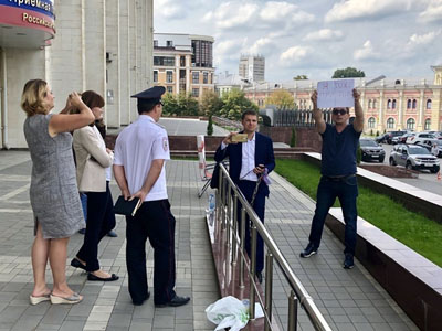 Кандидат от КПРФ Юрий Корецких объявил голодовку до исполнения его политических требований. В Москве политик неоднократно опробовал аналогичную методику работы под стенами Государственной Думы. В Туле за спиной кандидата молча стояли несколько пожилых женщин. Соратники Олега и Алексея Лебедевых снимали происходящее на видео. Братья тоже периодически выходили откуда-то и фотографировали.