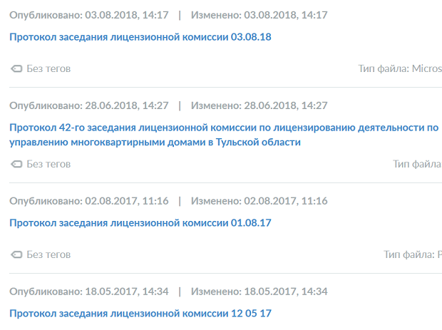 Хотя, согласно Постановлению правительства Тульской области, пункт 26, «заседания Лицензионной комиссии проводятся по мере необходимости, но не реже двух раз в месяц». Ну да Бог с этим, может, и правда, необходимости не было, все УК в этот период были белыми, пушистыми и исправно выполняли свои обязанности по обслуживанию МКД и оплате ресурсникам поставленных ресурсов.