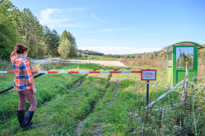 — Видите, прорыты глубокие рвы с двух сторон аж до Оки, а вот и шлагбаумы, у которых в будках — охранники,— сетует провожатая.— Нас уже и в лес не пускают, и к реке не дают пройти. А ведь мы здесь летом катались на велосипедах, а зимой на лыжах. До Приокской ходили по прямой, а теперь охранники орут и гонят нас. Объявлено жителям: «частная территория». Почему, чья, по какому праву — нас, живущих здесь десятилетия, никто в известность не поставил. Говорят, якобы огорожено порядка 30 гектаров.