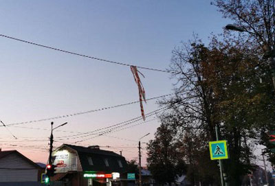 Сей необычный объект, вернее, несколько объектов висят-болтаются на свеженатянутом проводе через перекресток ул. Н. Руднева и Станиславского.
