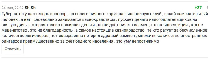 Как-то неуважительно по отношению к губернатору. Еще вставили комментарий болельщика про казнокрадство. Всё равно ничего не изменится.