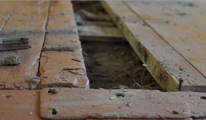 Полы подлежат полной замене, т.к. сгнили лаги и верхнее покрытие (доски). Стены спортивного зала имеют трещины в штукатурке, которая отваливается большими кусками. Состояние спортивного зала представляет опасность для проведения уроков физической культуры, дети могут получить травмы.