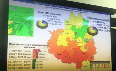 Наименьшая явка в Туле. В Привокзальном районе — 18,99%, в Зареченском — 18,79%, в Пролетарском районе — 17,26% избирателей.